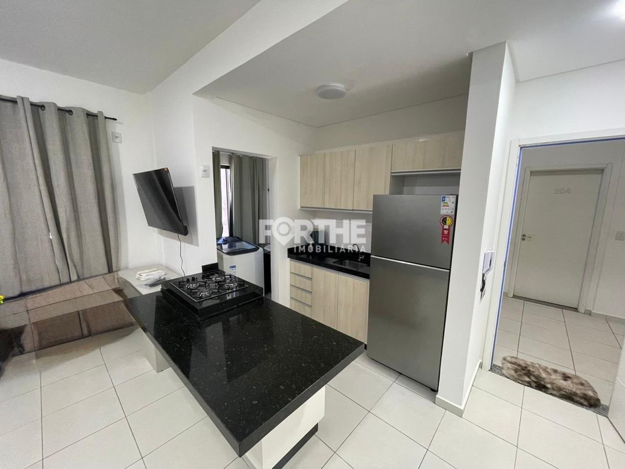 • Cozinha com móveis e sala de estar integradas;