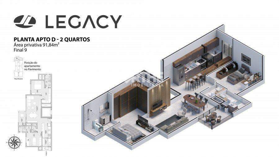 Apartamento à venda no Edifício Legacy, no Centro de Cascavel/PR, estando próximo ao Hospital e Maternidade Dr. Lima, aos Colégios Marista e Positivo, a uma quadra da Avenida Brasil e à Catedral Municipal Nossa Senhora Aparecida.